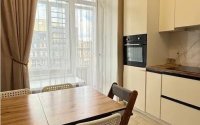 Квартира продаётся в связи с расширением. Полностью меблирована и готова к проживанию — заезжай и живи. В квартире остаются телевизор, кондиционер, стиральная машина, встроенная кухня с электрической плитой и духовым шкафом, холодильник, диван, тумба под ТВ, столы и стулья.