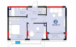 Продажа 2-комнатной квартиры, 55.86 м²