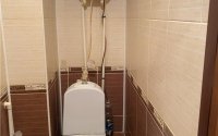 Пластиковые окна, на полу линолеум, чугунные радиаторы, требуется косметический ремонт. Кухня 8 кв.м, санузел раздельный, выложен кафелем, пластиковые трубы, счётчики воды, титан. Входная дверь металлическая, хорошего качества.