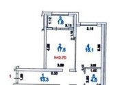 Общая площадь — 88,5 м². Удобная планировка: распашонка, просторный коридор (13,3 м²), отдельная кухня, зал, спальня, детская, две лоджии.