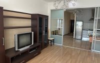 В квартире выполнен качественный ремонт. Планировка смежно-изолированная - жилая зона спрятана от посторонних глаз, а кухня-гостиная при желании разделяется стеклянной раздвижной перегородкой. В спальне и в прихожей находятся встроенные шкафы-купе, помимо этого в квартире имеется отдельное помещение для хранения - кладовка, площадью 1,2 кв.м. Стены под покраску, пластиковые окна. На полу сплошным ковром выстелен паркет. Имеется две большие застеклённые лоджии. Санузел совмещённый, просторный, с естественным дневным светом, так как в нем присутствует окно. В санузле имеется теплый пол, джакузи, стиральная машина. На кухне встроенная мебель, холодильник, электроплита, вытяжка. Также имеется кондиционер. Собственник оставляет всю мебель.