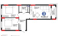 62 м², кухня – студия