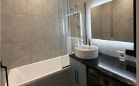 2 санузла (душевая + ванна), балкон и лоджия со шкафами для хранения. Кухня вынесена на балкон, вся встроенная техника остаётся (кроме мелкой и ТВ). Мебель из качественных материалов, ортопедические матрасы и ковры — остаются.