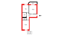 📐 Гостиная 15 м² с лоджией, спальня 12 м²