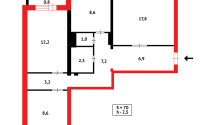 Общая площадь 67.5 кв.м. Кухня 9 кв.м.