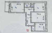 Продаётся квартира, с качественным ремонтом: стены выровнены бетонитом, установлены турецкие пластиковые окна, на полу немецкий ламинат. Планировка — распашонка, кухня просторная (12 м²), есть удобная кладовка. Квартира полностью меблирована и готова к проживанию, комнаты изолированные, новая сантехника, установлены счётчики.