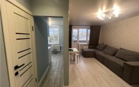 Выполнен капитальный ремонт из дорогих материалов. 5-камерные пластиковые окна, которые выходят во двор. Электропроводка медная с автоматическими выключателями, сантехническая разводка вся пластиковая, напор воды отличный. Потолок натяжной с большим количеством искусственного освещения. Стены выровнены и окрашены, напольное покрытие ламинат и керамогранит. Санузел также в керамограните. Кухня со встроенной техникой. В зале встроенный шкаф. Вся мебель и техника останется при продаже.