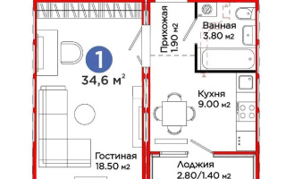 Продажа 1-комнатной квартиры, 34.6 м² в Астане
