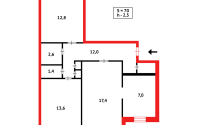 Просторная и уютная квартира площадью 70 м², с изолированными комнатами и длинным коридором, где есть место для всего.