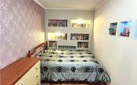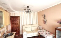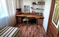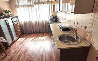 Квартира изначально была 5-ти комнатная, из одной большой , и просторной комнаты сделали кухню. Из кухни сделали ванную комнату, а из санузла сделали туалетную комнату. По всей квартире положен кафель, в комнатах ламинат, есть кондиционер, окна пластиковые выходят на обе стороны квартиры.