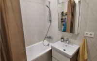 Продаю 1-комнатную квартиру, переделанную в 2-комнатную: кухня-гостиная и спальня, тихий район, новая сантехника Groe, кондиционер, ламинат, керамогранит, большая лоджия, мебель остаётся, в залоге.