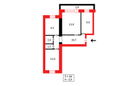 Общая площадь 64.5 кв. м. Кухня 9.9 кв. м.