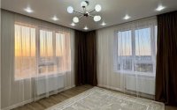 Квартира площадью 60 м² расположена на 9 этаже, окна выходят на солнечную сторону, открывается красивый вид на горы и город.