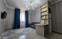 Продается уютная, улучшенная студия, с дизайнерской встроенной кухней, новой техникой и мебелью, пластиковые окна, счётчики, без балкона, рядом школы, садик, мечеть, магазины и ресторан.