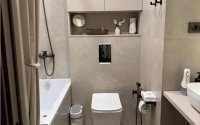 Продается 3-комнатная квартира в новом ЖК. Современный ремонт, дорогие материалы, техника Samsung, мебель Askona, Rooms. Кухня-гостиная, 2 спальни, гардеробная.