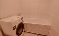 Санузел полностью в кафеле, стояк пластиковый — все новое, чисто и аккуратно.