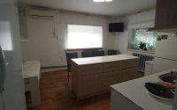 Это светлый и солнечный, комфортный и просторный дом. На первом этаже большой зал, две спальни и просторная кухня с двумя большими окнами. Второй этаж - мансарда одна больная просторная комната с панорамным окном. Кухня оборудована современными удобствами: кондиционер и подсветка рабочей зоны, запуск настроен на умный дом, встроен фильтр для питьевой воды. В кухне для хранения используются ниши в стене (большая вместимость).