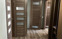 Квартира не угловая, установлены пластиковые окна и счётчики. Просторная гостиная-студия площадью 33,8 кв. м., две спальни — 13,5 и 10,1 кв. м. Санузел совмещён, с просторной ванной. Есть застеклённый балкон-лоджия.