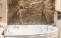 Санузел совмещённый: душевая кабина, ванна, гигиенический душ, стиральная и сушильная машины, титан.