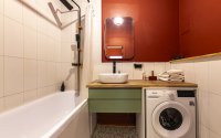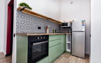 Для комфортного проживания есть всё необходимое:микроволновая печь, холодильник, стиральная машина, утюг с гладильной доской, чайник, посуда, кухонная плита, телевизор SmartTV, безлимитный Wi-Fi, ванные принадлежности, постельное бельё, средства личной гигиены.