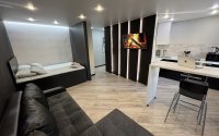 • Квартира выполнена в стильных темных тонах, создающих атмосферу уюта и комфорта.