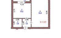 Этаж 3 из 4. Общая площадь 55,6м. Кухня 15,6м. Зал 26,8м