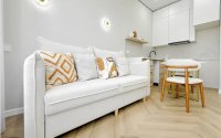 • Пол — качественный ламинат: елочка,современное покрытие, устойчивое к влаге и износу.