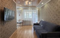 Проведен капитальный ремонт: полностью заменена электропроводка, стояки холодной и горячей воды, а также канализационный. Установлены новые алюминиевые радиаторы. На полу — ламинат, натяжные потолки, высота потолков 3 метра.