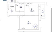 Продажа 1-комнатной квартиры, 43.8 м², ул. Калдаякова, дом 19/1