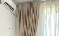 Все окна с ролл-шторами, дорогие шторы на заказ с карнизами, новый кондиционер - остаются.