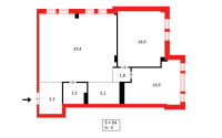 86.6 м², кухня – студия