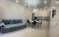 Просторная гостиная, объединённая с кухней — идеально для семейных ужинов и встреч с друзьями