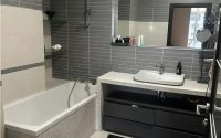 Квартира оснащена системой Smart Home и Face ID, охраняемым двором, парковкой и консьержем. Внутри: кухня с залом, спальня с кабинетом и ванной, детская с балконом и гостевой санузел.