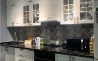 — Встроенная кухня с техникой: вытяжка, плита, духовка, холодильник;