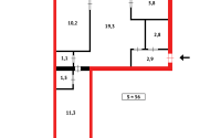 55 м², кухня – 6.1 м²