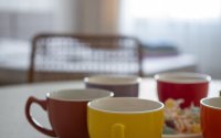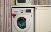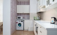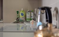 🍳 оборудованная кухня с посудой, микроволновкой и чайником