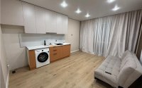 Остаётся вся необходимая мебель и техника: кухня, варочная поверхность, диван, стиральная машина, шкафы, шторы.