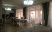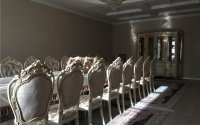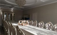 Просторный зал-гостиная с большим обеденным столом — идеально для семейных праздников и дружеских встреч.