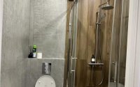 Ремонт выполнен «для себя» с использованием качественных и дорогих материалов: водостойкий ламинат, надежные двери, современная сантехника.