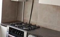 Кухня площадью 6 м² оснащена газовой плитой Gefest и новой мебелью. Межкомнатные двери с магнитными замками. Балкон застеклён и обшит сайдингом, оборудован встроенным шкафом с полками. Окна выходят на восток, во двор с высокими деревьями, где тихо и спокойно.