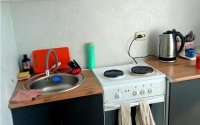 Квартира тёплая и уютная, установлен электрический титан. Пол — линолеум.