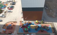 Безопасная детская площадка, с видеонаблюдением и футбольное поле, на уровне второго этажа.