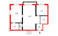 44 м², кухня – 6 м²