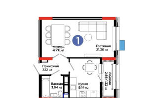 Продажа 1-комнатной квартиры, 43 м² в Астане