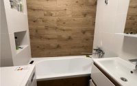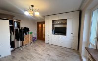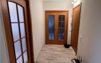 В квартире выполнен свежий современный ремонт. Сантехническая разводка пластиковая. Радиаторы отопления биметаллические с регуляторами. Электропроводка на основных потребителях медная. Установлены автоматические выключатели. Окна пластиковые с установкой противовыпадных сеток. Потолок и стены выравнены. В кухне потолок натяжной матовый. Напольное покрытие линолеум. Новая мебель, изготовленная на заказ, в кухне встроенная техника, в санузле инсталляция. Установлен также кондиционер. На балконе встроенный шкаф для хранения. Межкомнатные двери частично новые. Входная железная. Окна выходят на ледовый дворец.
