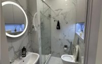 Полностью заменена электрика и кабеля, перегородки из пескоблока и бетона. Раздельные детские комнаты для мальчика и девочки, есть кабинет. Установлена немецкая сантехника Grohe, розетки и выключатели также немецкие.