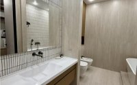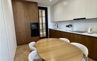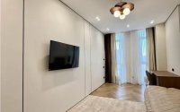Квартира полностью меблирована и готова к проживанию. Встроенная кухня с техникой Bosch, в комнатах установлены кондиционеры и телевизоры. Все материалы — премиум-класса: двери из шпона, кварцвиниловый пол, итальянская плитка и керамогранит.