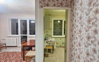 В квартире средний косметический ремонт, в коридоре, комнатах и кухне на полу линолеум, санузел выложен панелями.