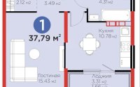 37.79 м², кухня – 10.78 м²
