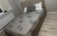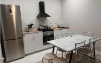 Квартира светлая, выполнена в спокойных тонах. Полностью меблирована: двуспальная кровать, гардероб, диван, кухонный гарнитур.